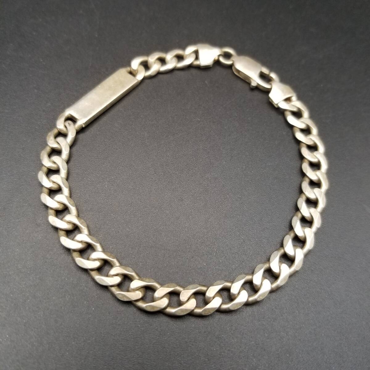 > Stefani Argento イタリア ヴィンテージ 変形 IDタグ 925 シルバー ブレスレット 銀 長方形プレート 喜平チェーン スタイリッシュ Y23-T