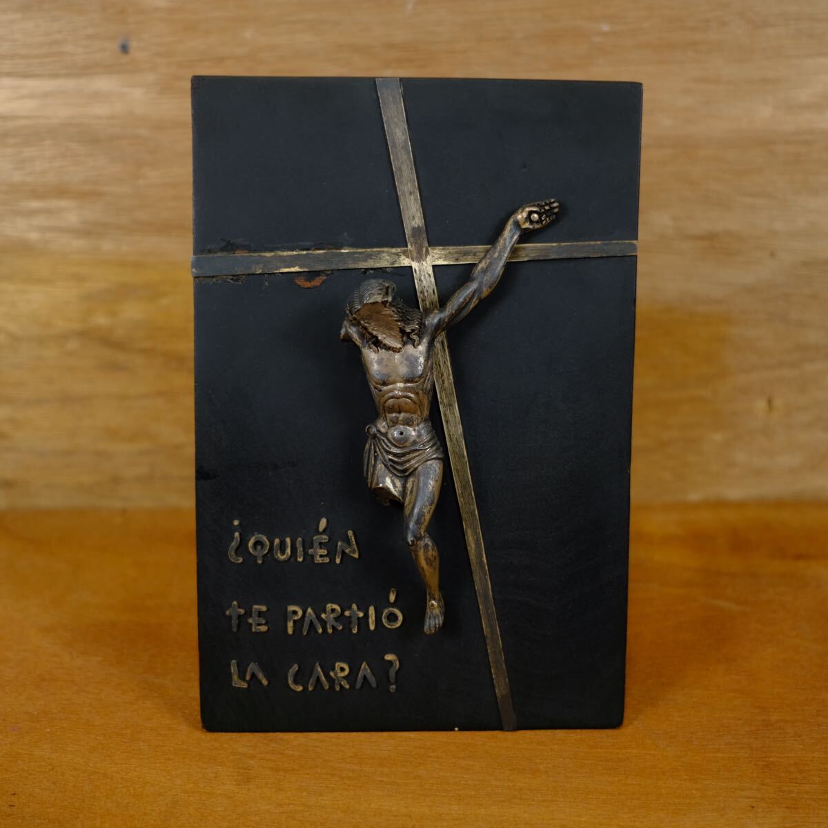 - アンティーク 磔刑像 キリスト教 クロス オブジェ 作品 彫刻 木製 金属 ビンテージ 現代アート 金属