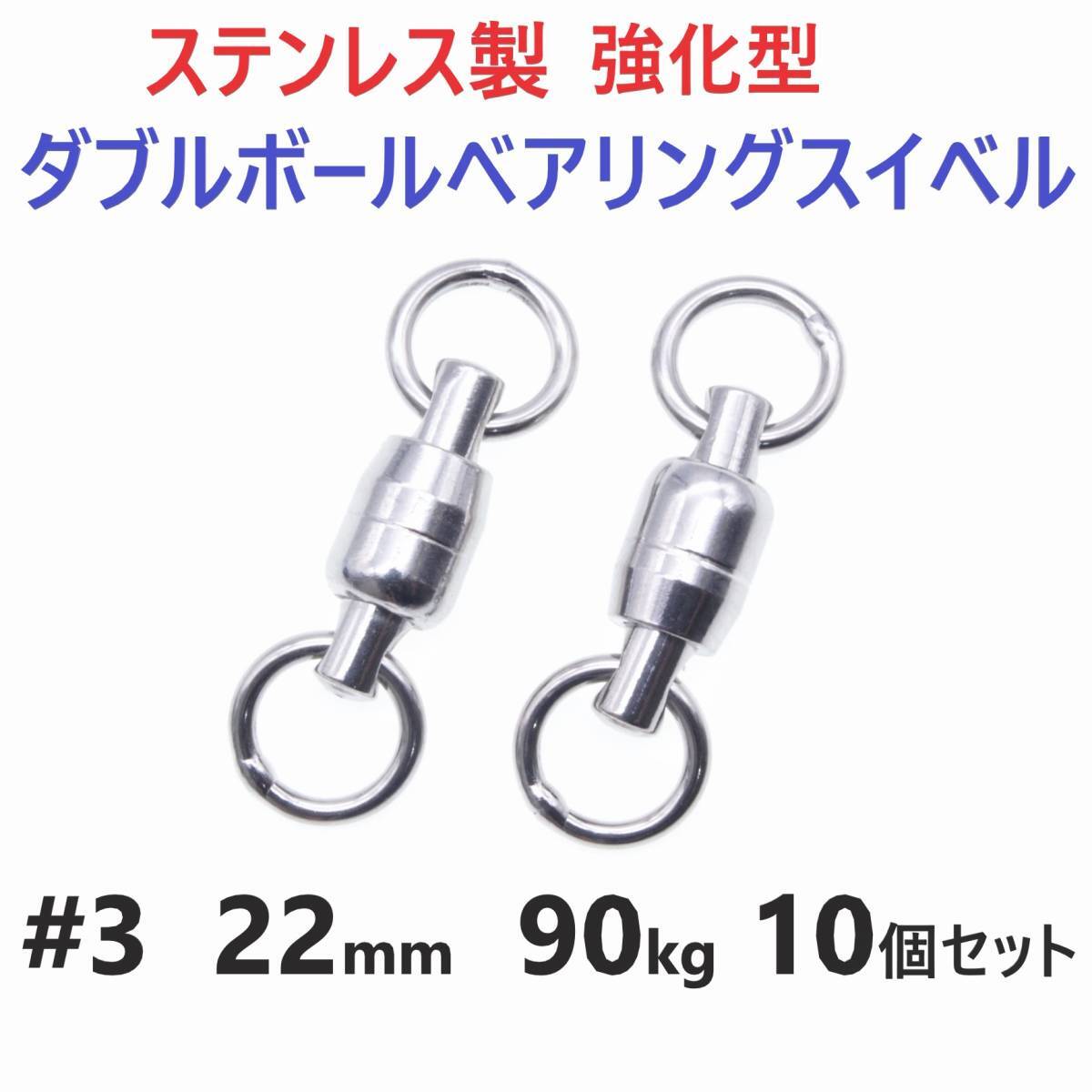 - 【送料150円】強化型 ステンレス製 ダブルボールベアリングスイベル #3 22㎜ 90㎏ 10個セット 溶接リング 両軸回転 ジギングに!