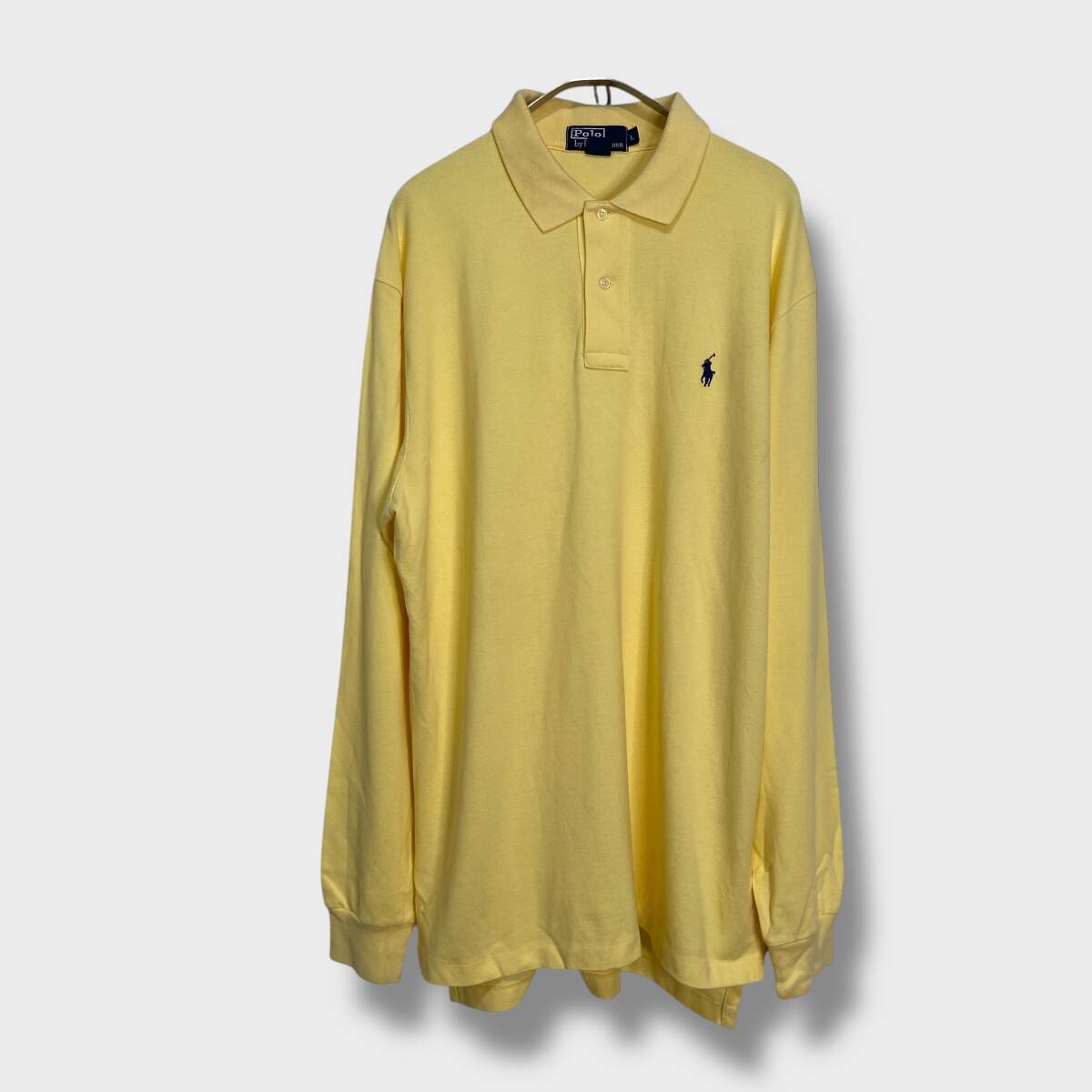 - 送料無料☆90s☆Polo By Ralph Lauren☆ラルフローレン☆長袖ポロシャツ☆ポニーマーク☆無地☆イエロー☆L☆G25M