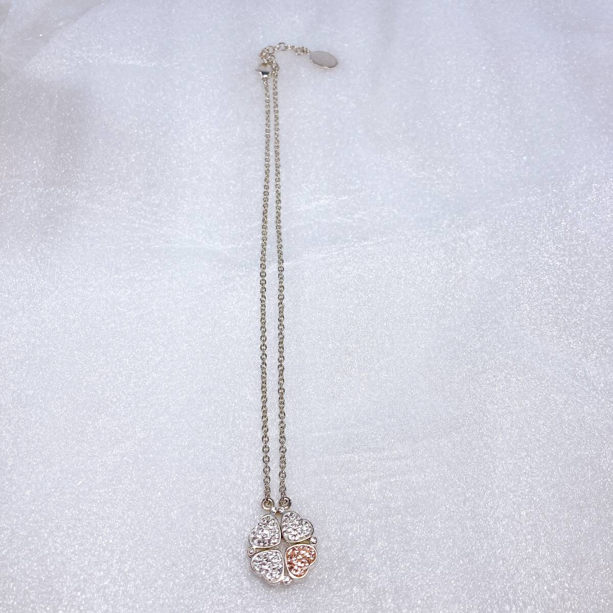 > |1569|フォリフォリ Folli Follie ネックレス ペンダント ラインストーン クローバー ハート ☆