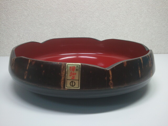 - ☆r☆【木工工芸・昭和レトロ】桜皮細工 樺細工 秋田・角館 螺鈿梅花紋 菓子鉢 インテリア☆