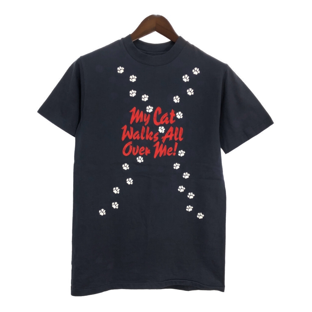 - 90年代 USA製 Hanes ヘインズ 半袖Tシャツ メッセージ ネイビー(メンズ M)中古 古着 T5126