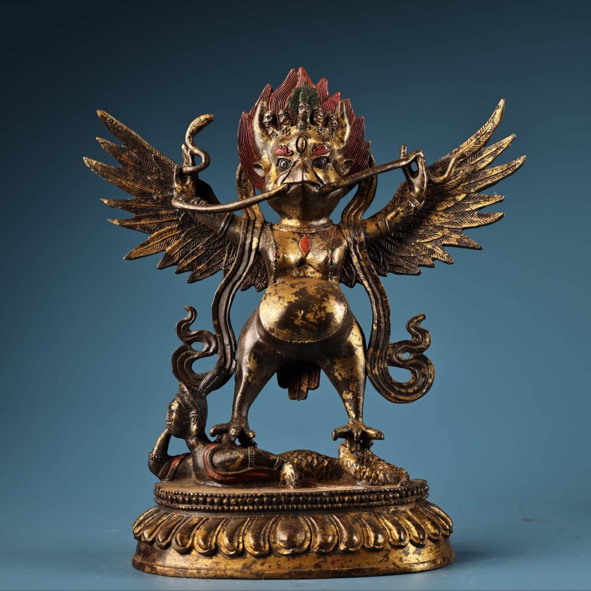 - 『館蔵珍品 銅製 泥金 大鵬金翅鳥像 仏像 宗教 仏教古美術 供養品』稀少珍蔵品 古賞物 貴重物品 収蔵品 中国古美術 時代物 古董品