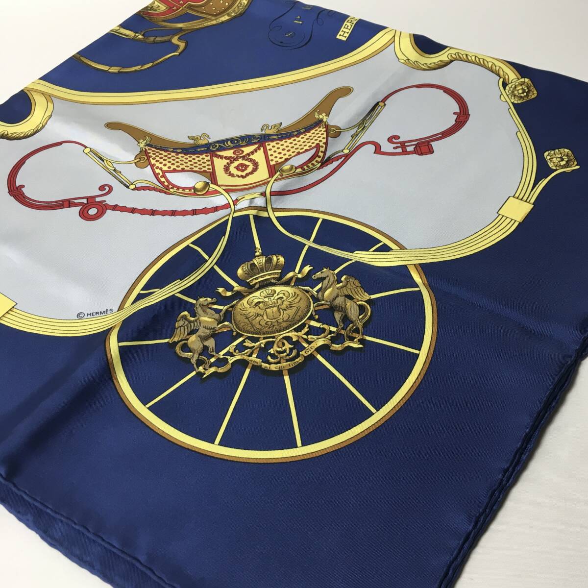 - 76B123|美品|エルメス カレ 90 スカーフ シルク ネイビー