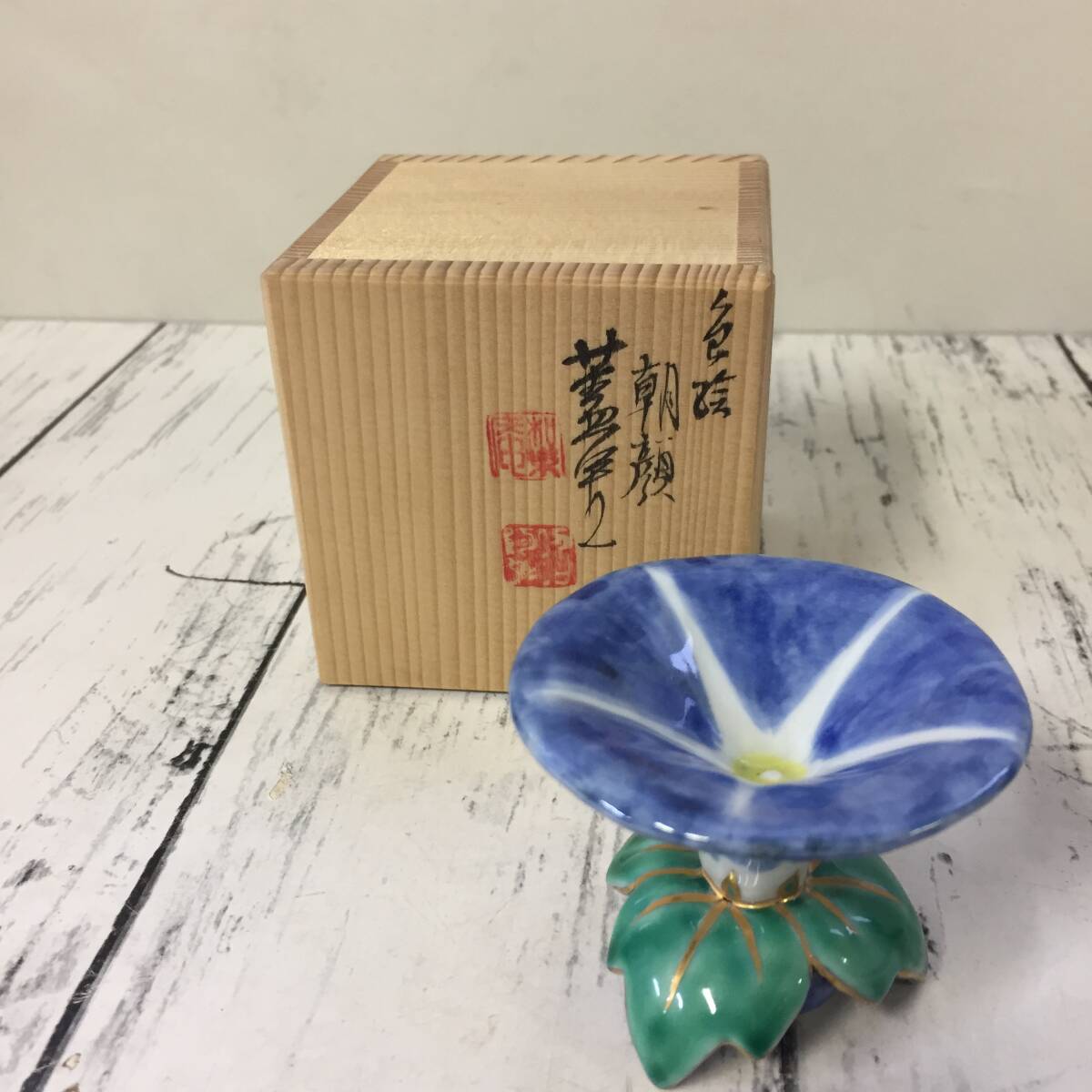 - 色絵朝顔 蓋置 高野昭阿弥作 共箱 茶道 茶道具 京焼 Z50721