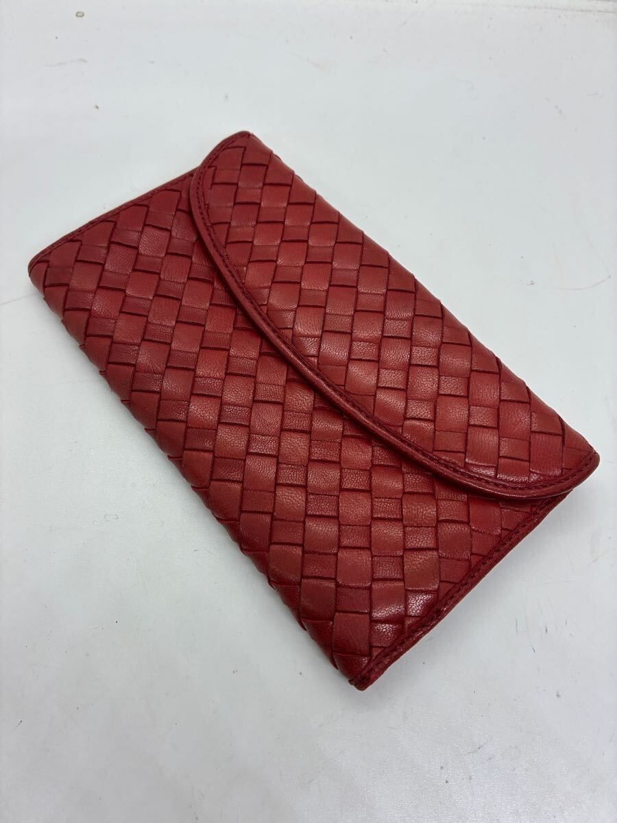 - 上質 イタリア製 長財布 レザー イントレチャート 赤 Geronico