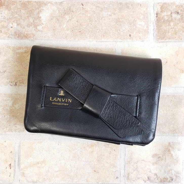 - ランバンコレクション レザー 二折財布 ボックス型小銭室 ブラック リボン 財布 LANVIN COLLECTION