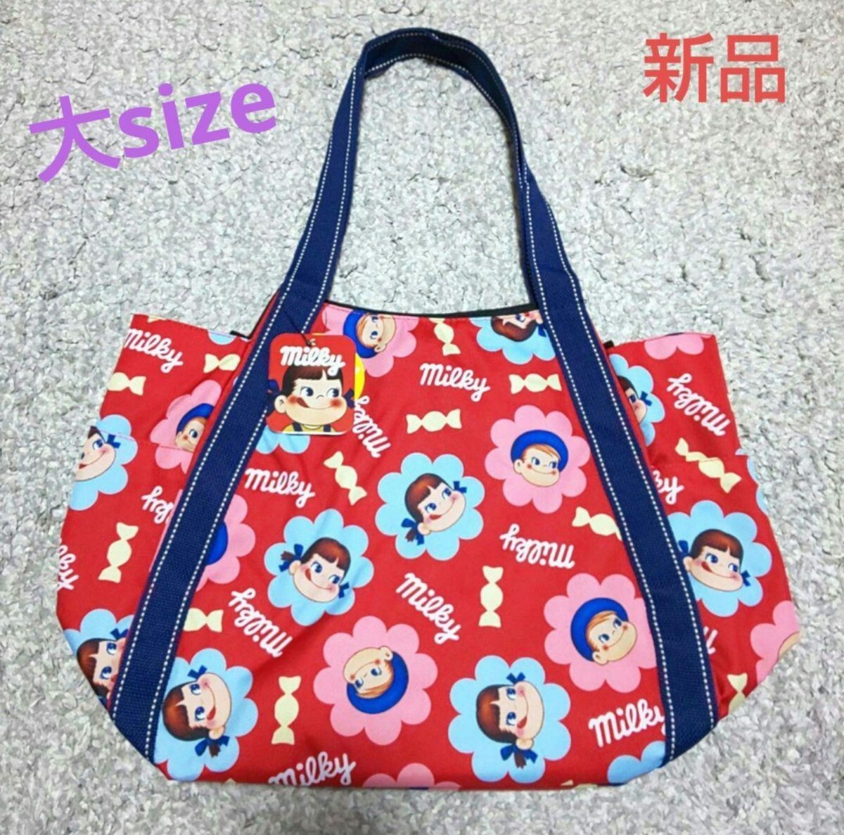 - ペコちゃん バルーントートバック(大) レッド色 フラワー柄【新品・タグ付き】