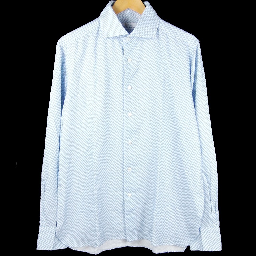 > ■Mario Muscariello マリオ ムスカリエッロ / バーニーズニューヨーク 取扱 / イタリア製 / メンズ / ブルー 総柄 ドレスシャツ size XL