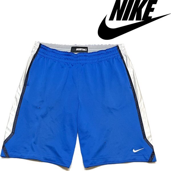 > 1点物◆ナイキNIKEバスパン青ショートパンツ古着メンズL/XLレディースOKアメカジ90sストリートスポーツUSAブランド短パン中古バスケ349306