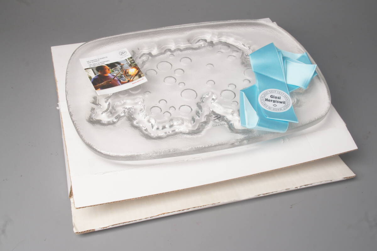 - 未使用保管品 スイス Glasi Hergiswill ガラス製平皿 盛皿 洋食器 工芸ガラス