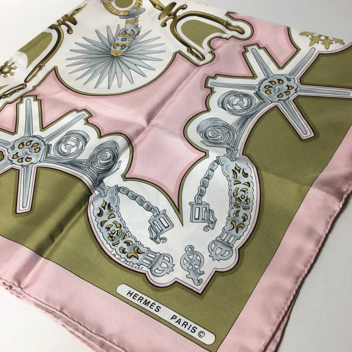 - 76B261|エルメス カレ 90 スカーフ シルク ライトピンク