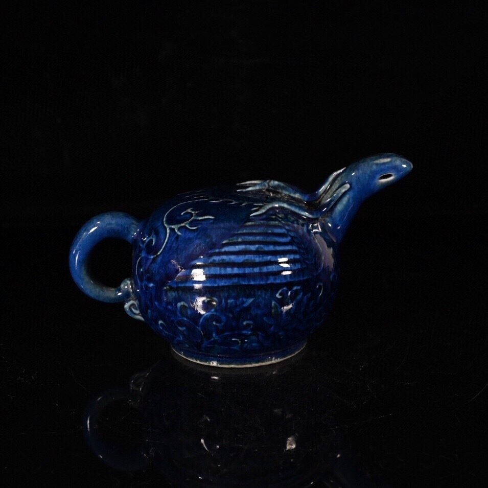 - 『館蔵珍品 元 古陶瓷品 藍釉 鳳頭倒流壺 陶藝』稀少珍蔵品 古賞物 貴重物品 収蔵品 中国古美術 時代物 古董品