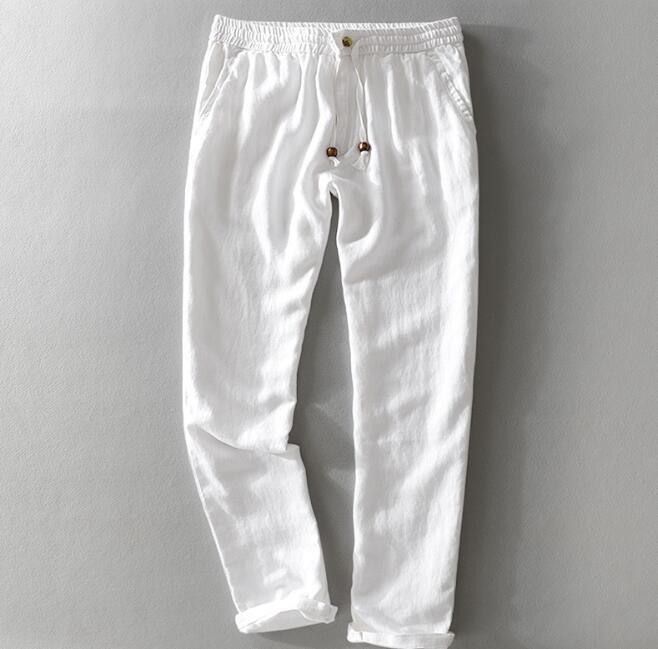 - 新作チノパン メンズ リネンパンツ 上品 麻無地 ロングパンツ スラックス イージーパンツ ストレート 紳士 春夏 ホワイトw30~40選択