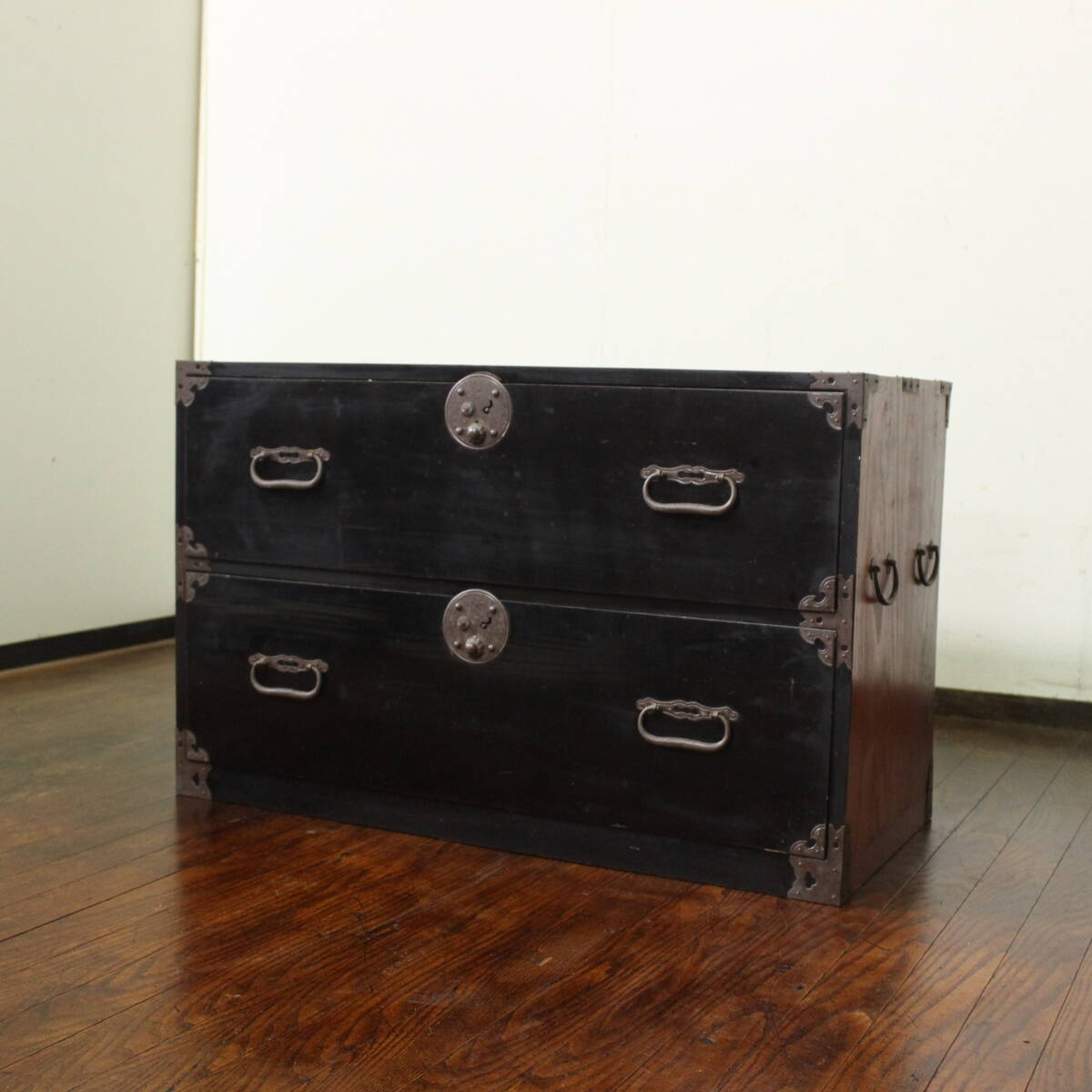 - レトロ・アンティーク!丸金具!庄内箪笥 引出二杯・中桐!ローチェスト!古家具/丸金具/古布//時代箪笥/和家具/和箪笥/ローボード