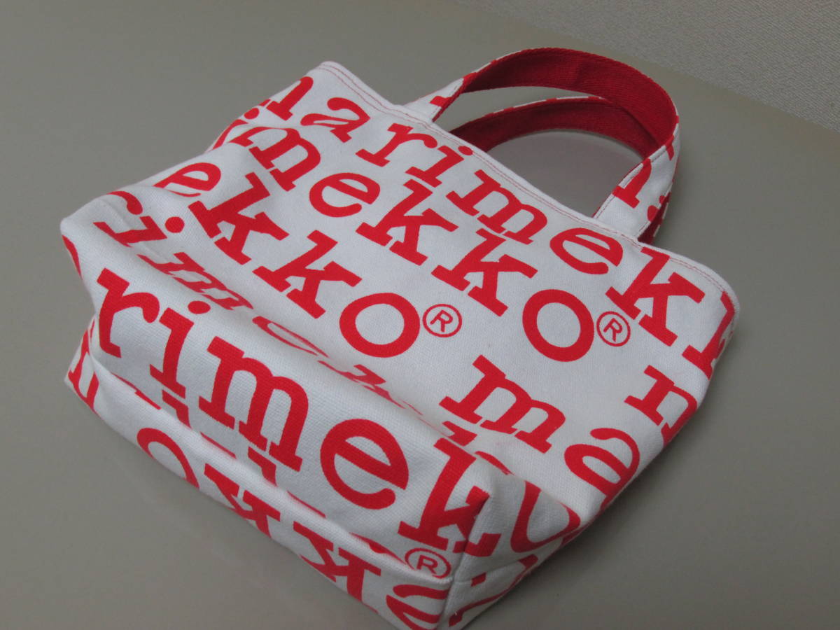 - マリメッコハンドメイド可愛いバッグCP マリメッコロゴ 赤7