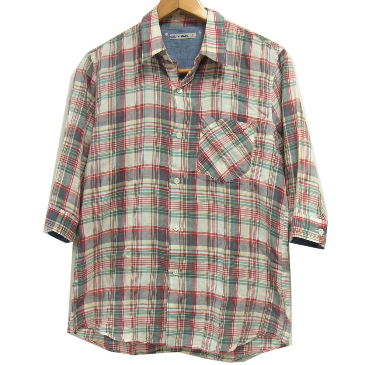 > 定価15.000円☆GAIJIN MADE ガイジンメイド リネンブレンド 七分袖 シャツ チェック柄 日本製 ハリウッドランチマーケット 夏物