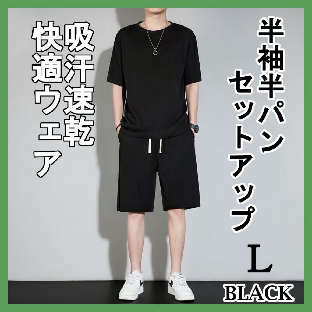 - L ブラック セットアップ メンズ ルームウェア 吸汗速乾 冷感 通気性 パジャマ 上下セット スポーツ フィットネス