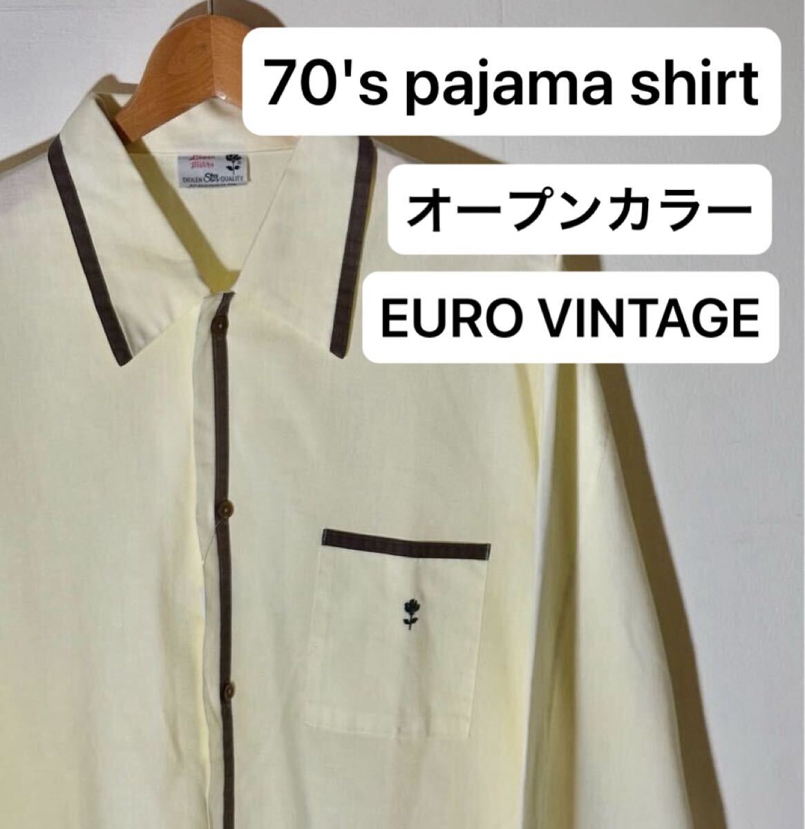> 美品 70's EURO VINTAGE ユーロ ヴィンテージ パジャマ シャツ 薔薇 ワンポイント 刺繍 オープンカラー ボックス ポケット USA アメリカ XL
