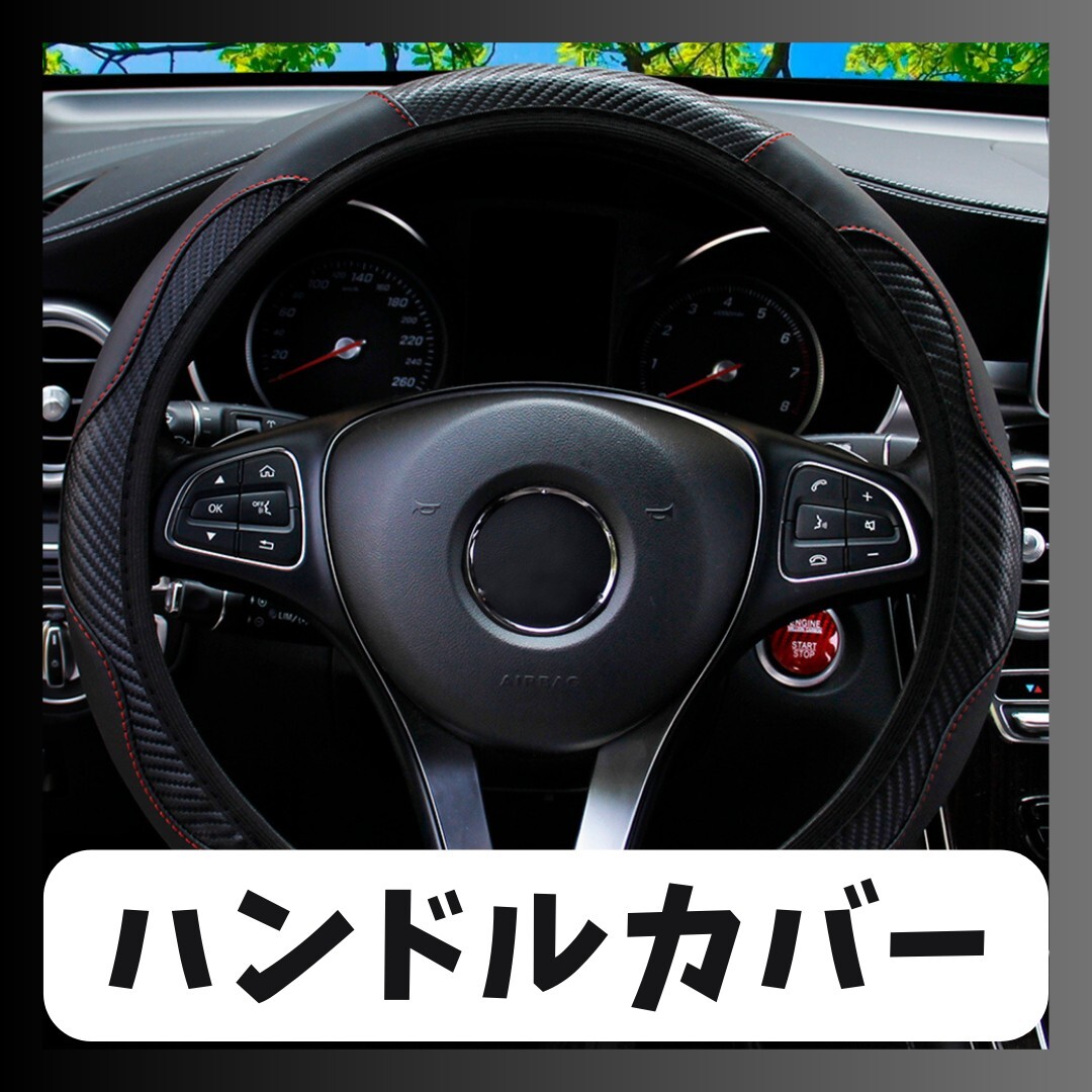 - 高級感◎ カーボン調 ハンドルカバー 黒×赤 ステアリング 滑り止め 内装ドレスアップ
