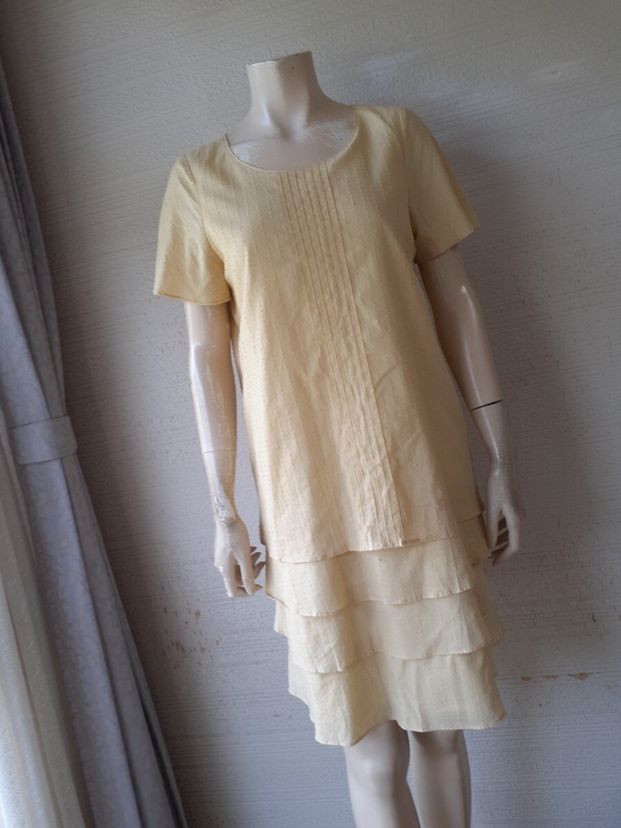 - ホコモモラ*Jocomomola★美品★ワンピース★コットン★エンブロイダリー★ティアードスカート★クリームイエロー系★大きいサイズ42号