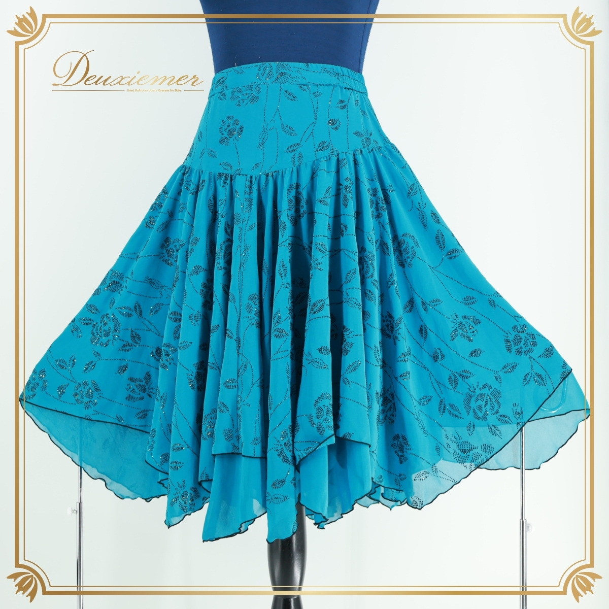 - 『送料無料』【日本製 社交ダンス衣装】グリーン Bright Proceed ブライトプロシード スカート 緑 黒 レッスン ブラック 花柄 かわいい