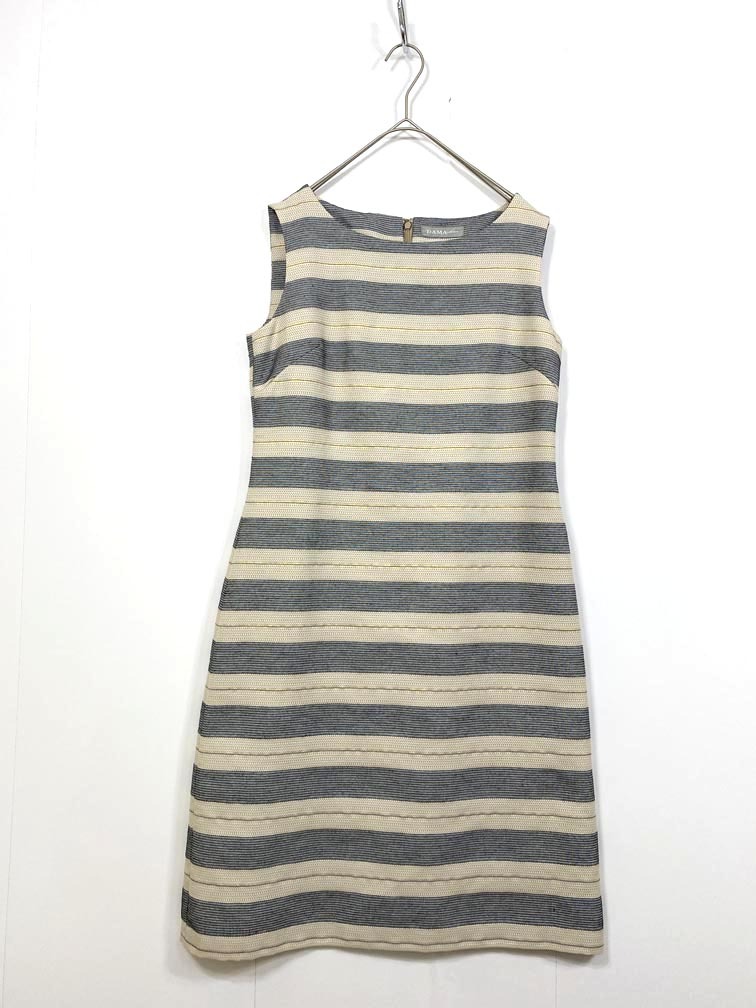 > ゆうパケットOK DAMA collection ダーマコレクション ボーダー ノースリーブ ワンピース size9AR/ベージュ ■◆ ☆ fdc4 レディース