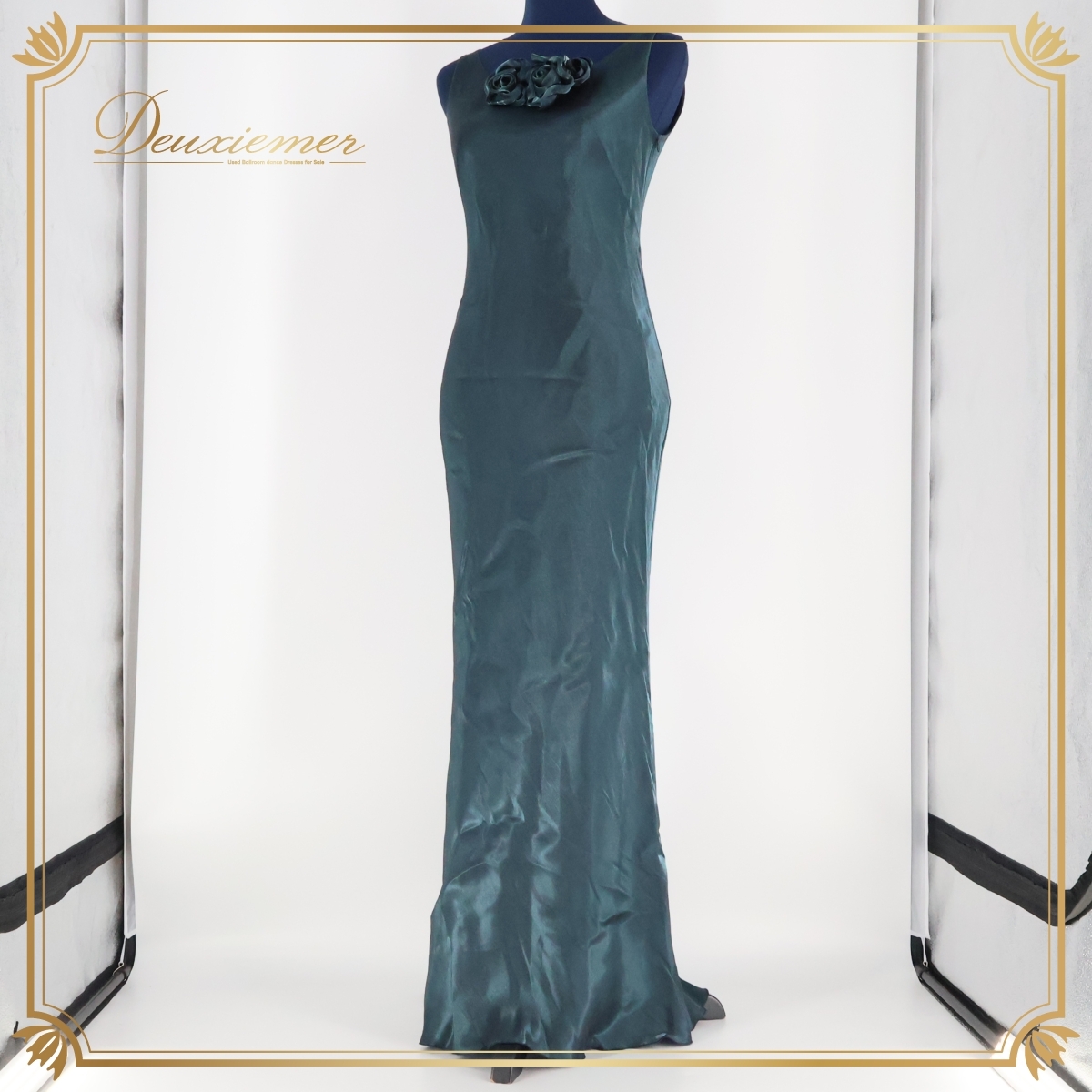 > 『送料無料』【日本製 パーティドレス】グリーン FUNQUETH 東京ソワール ワンピース ドレス 深緑 光沢 艶 装飾 発表会 イベント ダンス