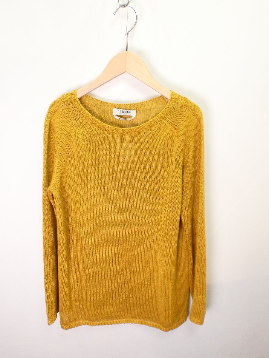 - マックスマーラ S Max Mara 麻100伊製 春夏ニット【L's(M相当)/10万円/マスタード/SAランク】c5AE