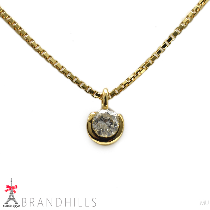 > ダイヤモンド 0.10ct ネックレス 一粒 K18金 750YG イエローゴールド 1.9g 極美品
