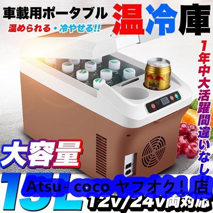 - 特選★車載 冷蔵庫 温冷庫 車 ポータブル 15リットル ドリンクホルダー付 クーラーボックス 保温 15L 冷蔵 ウォーマー 車載用