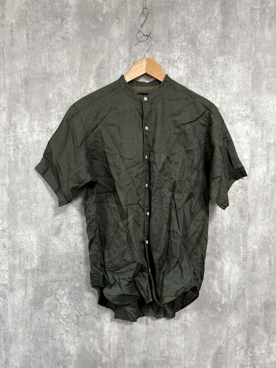 > ネコポスOK WORKER CLOTHING SUPPLY ワーカークロージングサプライ リネン100% 麻 メンズ 半袖 シンプル シャツ sizeM/緑 ■◆ メンズ