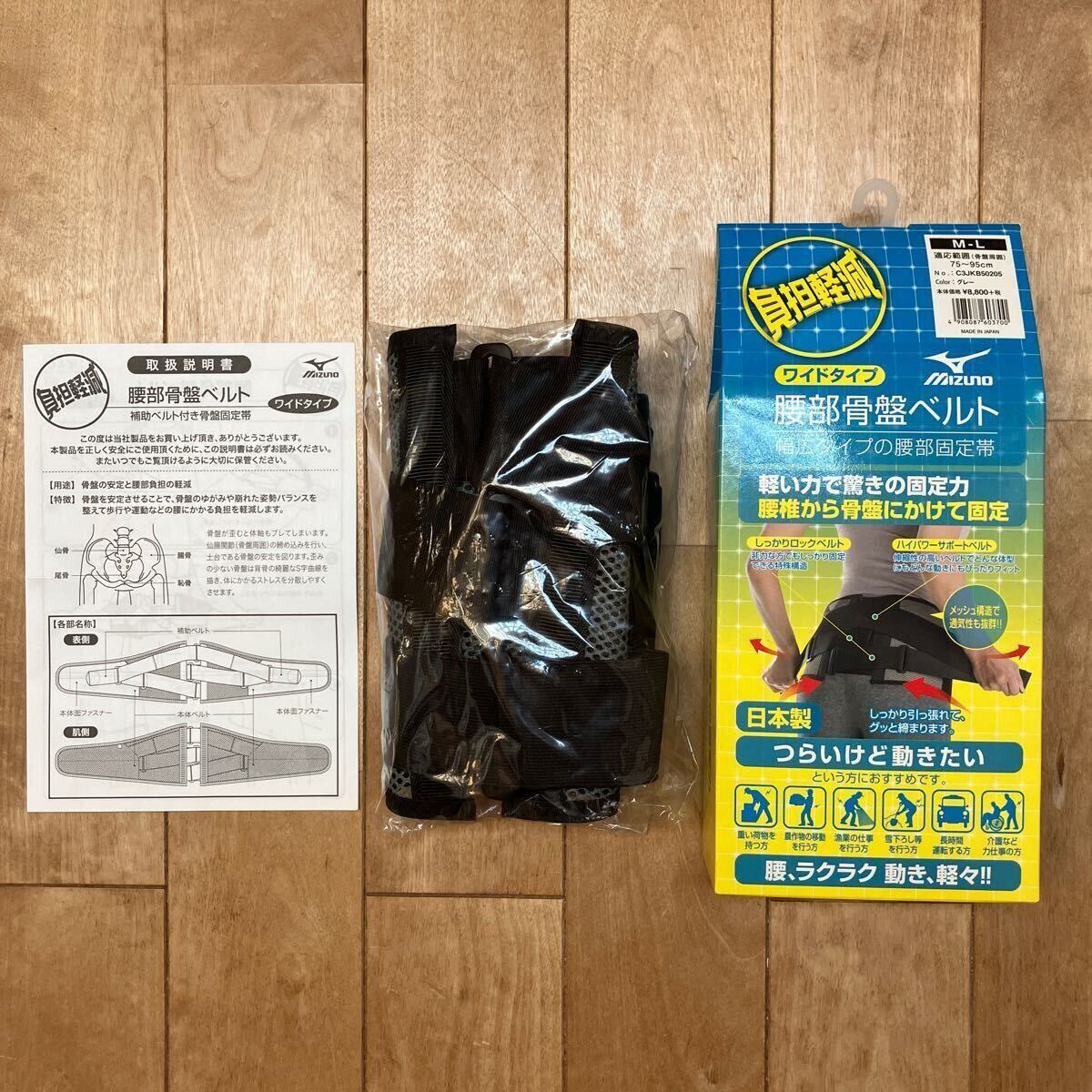 - 【送料無料/未使用】ミズノ 腰部骨盤ベルト 幅広タイプの腰部固定帯 日本製 サポーター 負担軽減 M-L 75〜95cm グレー ワイドタイプ