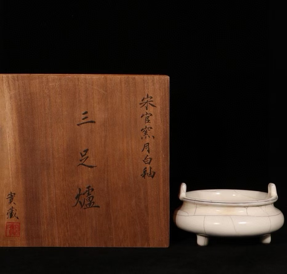 > 磁器 香炉 秘藏 宋代官窯月白釉三足炉・鼎 酒器 茶器 唐磁 染付 陶磁器 收蔵品 古美味 時代物 古美術 古置物 希少珍品 中國文玩7.3