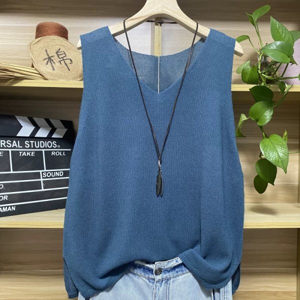 > 25zy サマーニット ノースリーブ トップス 高質 ラフ 麻タッチニット チュニック ナチュラル 麻混 サラサラ 涼感 Vネック4
