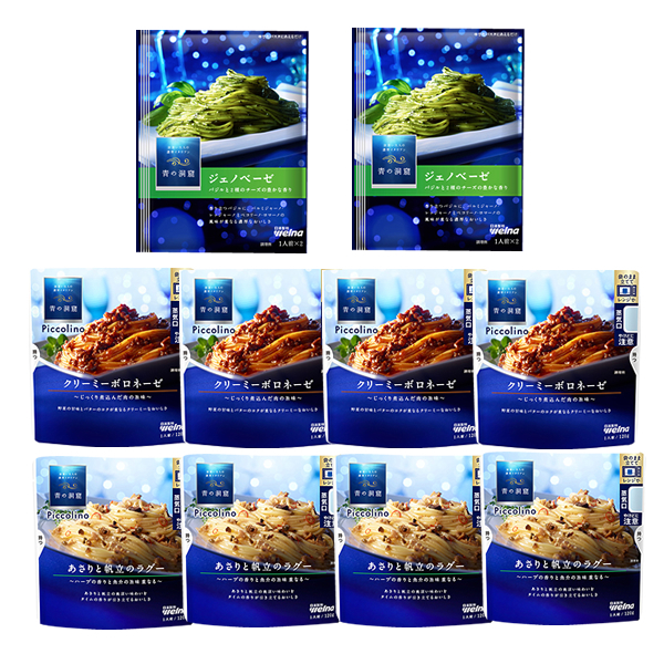 - ■青の洞窟 piccolino ジェノベーゼ・クリーミーボロネーゼ・あさりと帆立のラグー 3種10袋(12人前)■