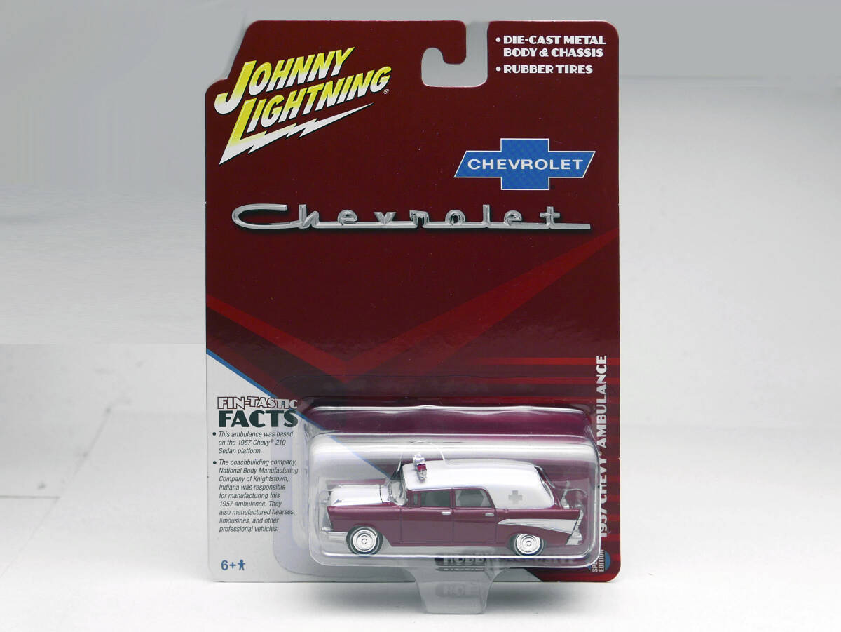 - 1/64 JohnnyLightning シボレー 救急車 赤/白屋根 1957 Fin-tastic Facts JLSP130
