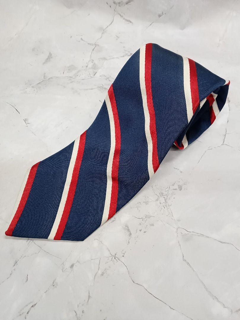 - ブリューワー ネクタイ 紺 ストライプ コットン シルク【n584】