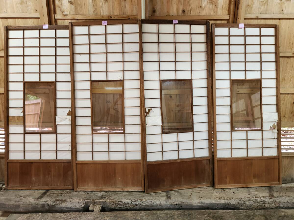 - 古建具 昭和レトロ ガラス障子 組子 4枚建て②