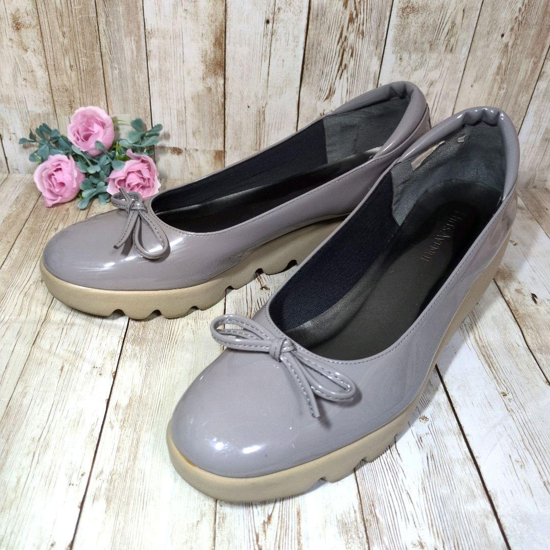 > 【HILLS AVENUE】ウェーブソール☆リボンパンプス☆エナメル☆24.5cm☆ヒルズアヴェニュー☆ウェッジ☆レディース靴☆ヒルズアベニュー
