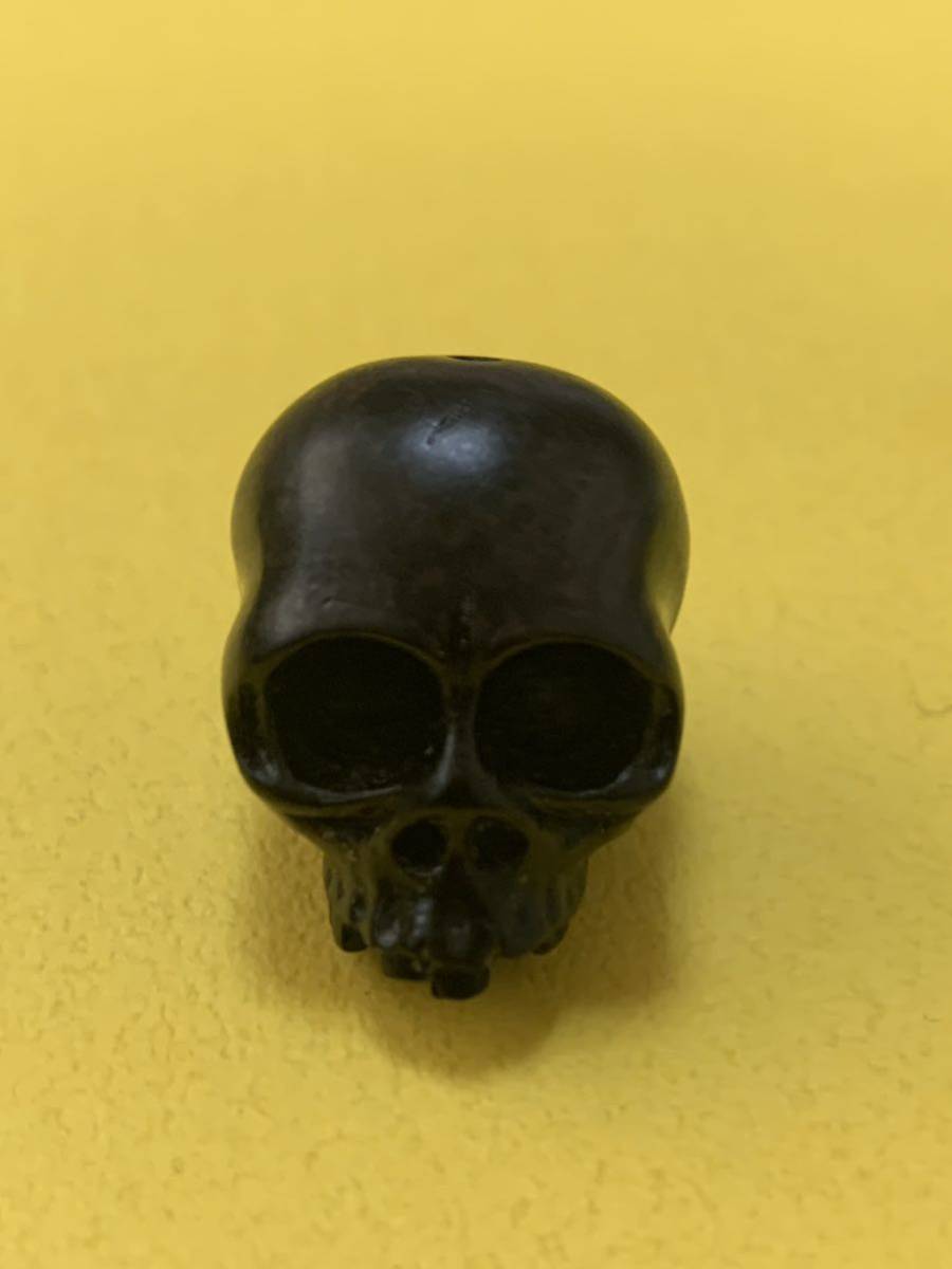 - 黒檀 一玉 特大 どくろ ドクロ 頭蓋骨 skull スカル 根付 netsuke 提げ物 提物 骸骨 野晒し 髑髏 数珠