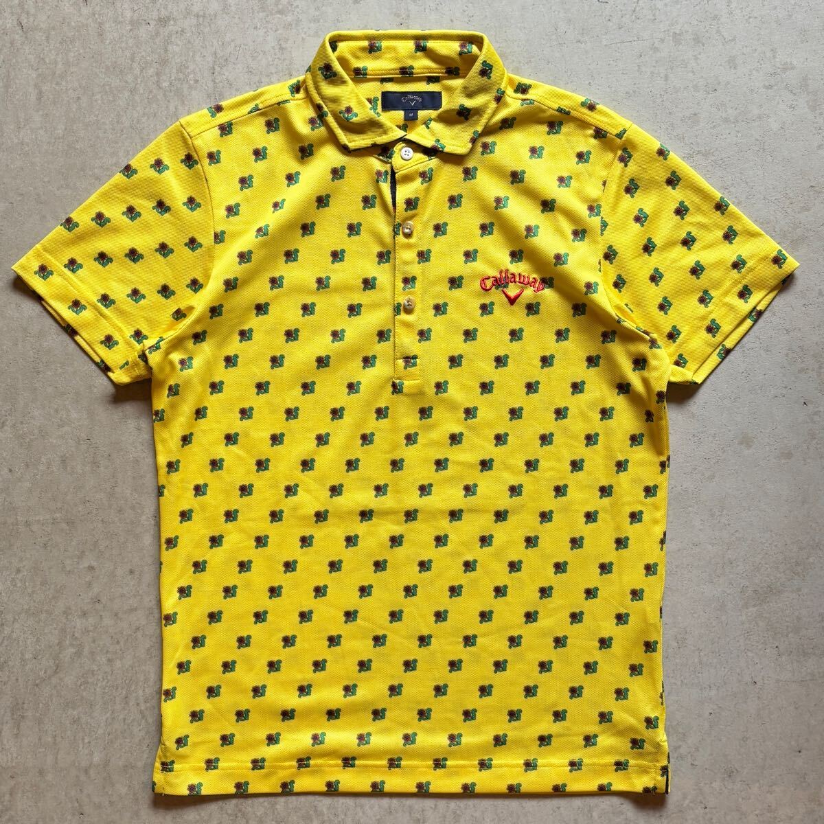 > 【美品】Callaway GOLF キャロウェイ ゴルフ 半袖ポロシャツ メンズ M 黄/yellow 花柄 総柄 ロゴ 刺繍 ワンポイント スポーツ 正規品