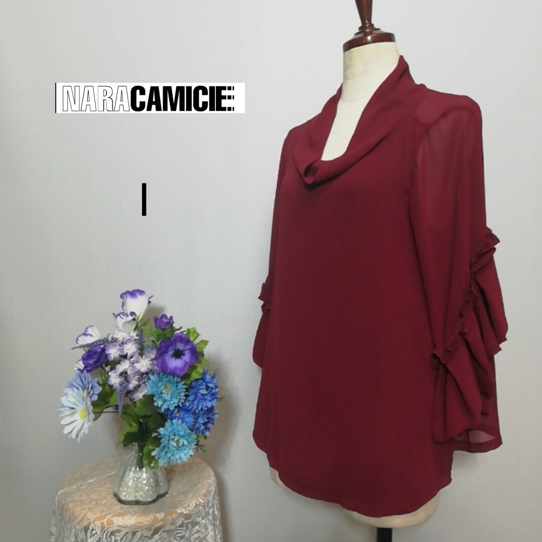 - 極上美品 ナラカミーチェ 透け感有り 長袖ブラウス ワインレッド色系
