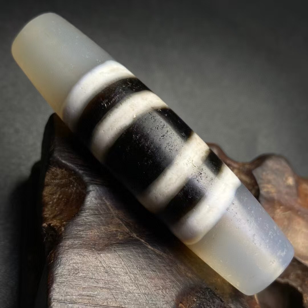 > 天珠 秘藏 清代 チベットの老天珠 高油老料 【 四線天珠】 裝身具 骨董品 風水 開運 辟邪 吊墜 古賞物 包漿渾厚7.13