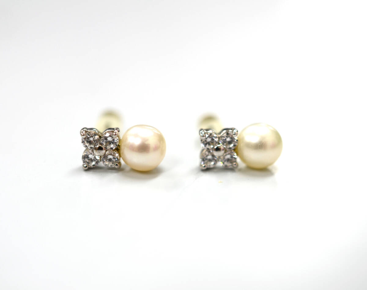 > K10WG ベビーパール キュービックジルコニア ピアス 総重量0.86g(キャッチ含まず) 【中古】 JA-28