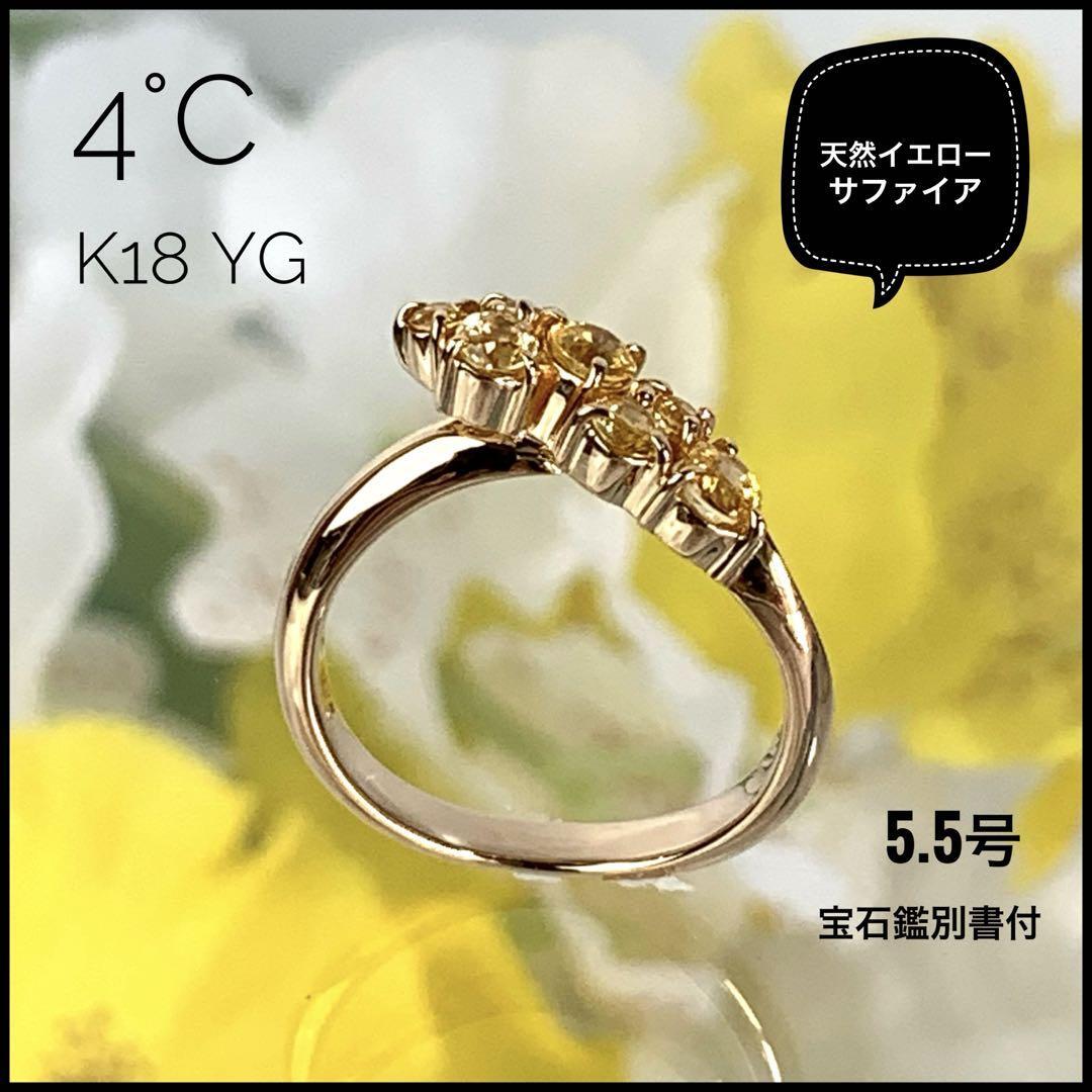 - ヨンドシー K18 YG サファイア 指輪 5.5号 3.17g 宝石鑑別書付