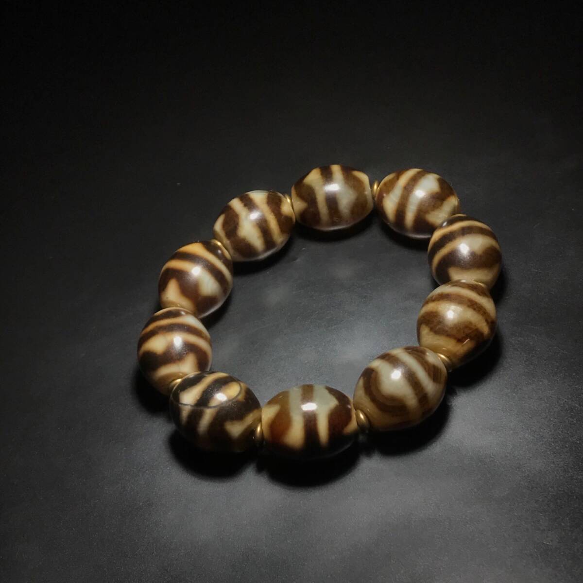 - 蔵友旧蔵出 瑪瑙製 細密彫 黑金 雙虎牙達洛天珠手串 高油包漿 根付裝身具 希少珍品 貴重品 置物 古賞物 中国古玩 中国古美術品