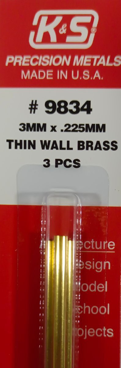 - 真鍮パイプ 外径3.0mm(肉厚0.225mm)×約30.48cm 3本入り K&Sエンジニアリング