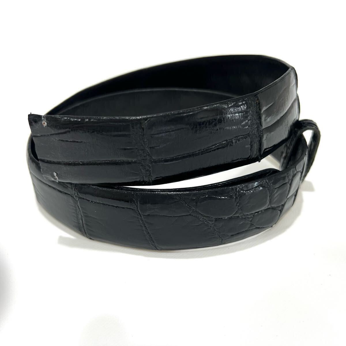 - INDIAN SHIP インディアンシップ クロコダイル レザーベルト メンズ 黒 送料無料